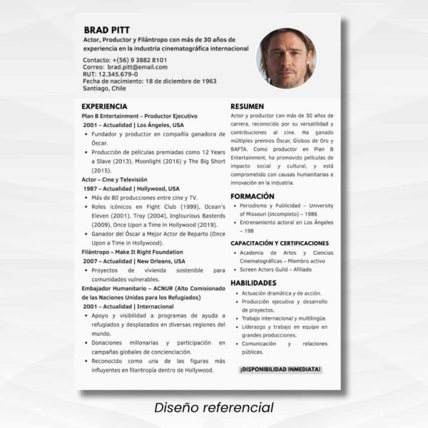 Pensado para sistemas de selección: estructura clara, lectura directa, compatible con postulación online.